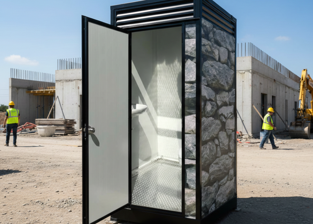 Panel de sandwich en paredes, le da el acabado al baño por dentro y por fuera, está pintada por el fabricante al horno.