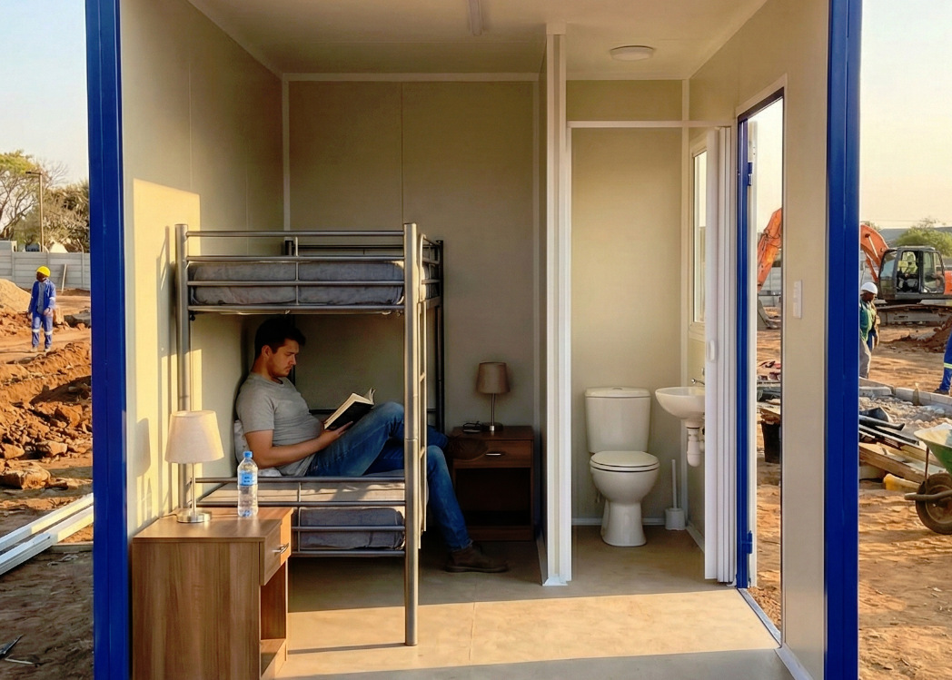 Panel de sandwich en las paredes del cuarto digno, que contiene características aislantes (Térmica y Acústica), acorde a la norma que regula este producto y como se indica.